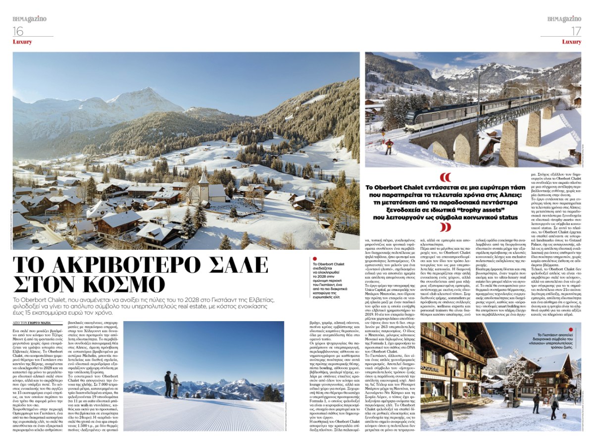 Στο πεδίο της υπερπολυτέλειας, το ακριβότερο σαλέ στον κόσμο ετοιμάζεται να ανοίξει τις πύλες του το 2028 στο Γκστάαντ της Ελβετίας. Το Obertbort Chalet φιλοδοξεί να αποτελέσει το απόλυτο σύμβολο του luxury real estate, με κόστος ενοικίασης που αγγίζει τα 15 εκατομμύρια ευρώ ετησίως.