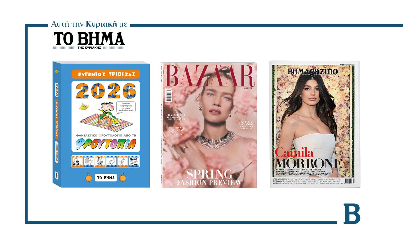 Στις 18 Ιανουαρίου, το ΒΗΜΑ της Κυριακής κυκλοφορει με το Φρουτολόγιο - ημερολόγιο 2026 του Ευγένιου Τριβιζά, το περιοδικό Harper’s Bazaar και όπως πάντα, το ΒΗΜΑGAZINO.