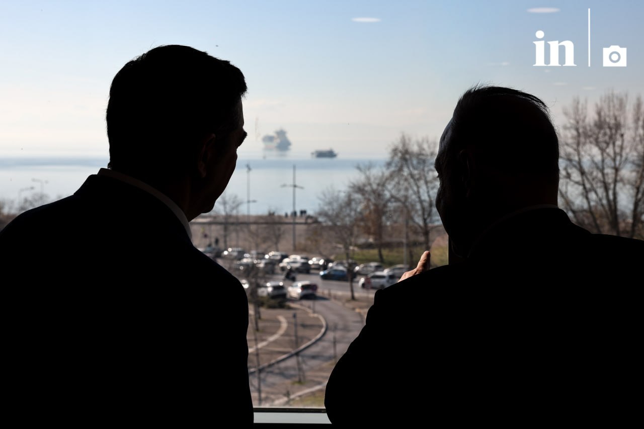 Ο Αλέξης Τσίπρας θαυμάζει την θέα από το δημαρχείο της Θεσσαλονίκης, μαζί με τον δήμαρχο