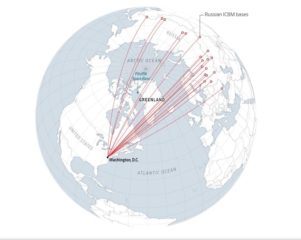Εάν η Ρωσία ή η Κίνα εκτόξευαν διηπειρωτικούς βαλλιστικούς πυραύλους κατά των ΗΠΑ, πολλοί από αυτούς θα διέσχιζαν πιθανότατα τη Γροιλανδία. Αυτός είναι ο λόγος για τον οποίο οι ΗΠΑ διαθέτουν μια βάση της Διαστημικής Δύναμης στο νησί, η οποία σαρώνει τον ουρανό για πιθανές επιθέσεις. Οι ΗΠΑ και το ΝΑΤΟ εξετάζουν το ενδεχόμενο να προσθέσουν επιπλέον εξοπλισμό ανίχνευσης πυραύλων στη Γροιλανδία και τις γύρω περιοχές.