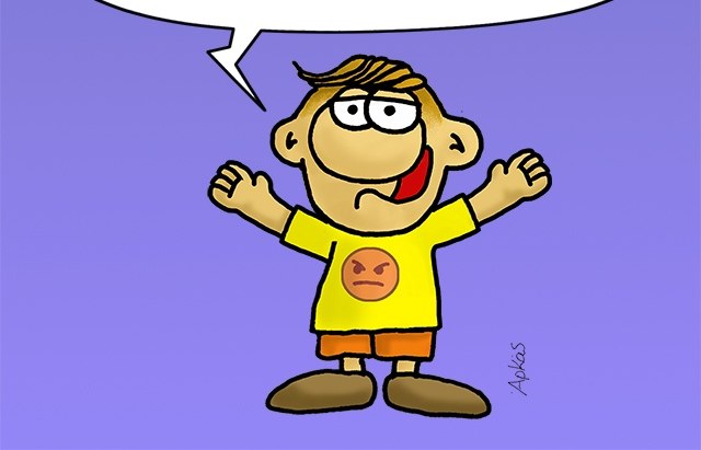 Στο σημερινό σκίτσο βλέπουμε τον Θανασάκη σε μωβ φόντο, στο κέντρο της εικόνας.