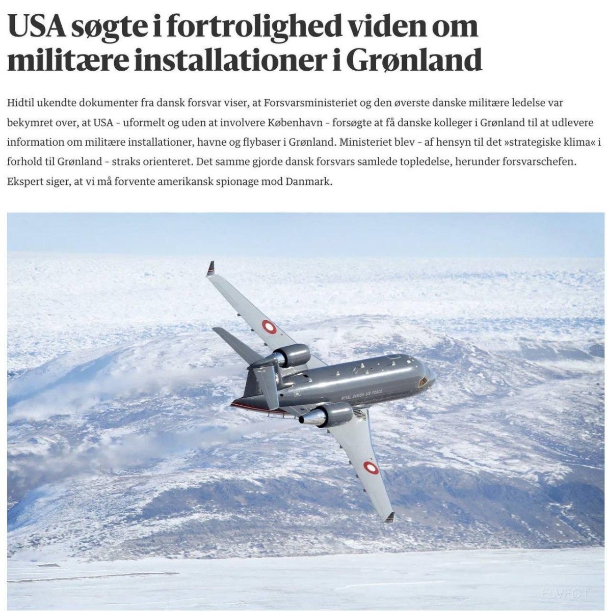 Το υπουργείο Άμυνας της Δανίας ενημερώθηκε αμέσως λόγω της στρατηγικής σημασίας της Γροιλανδίας.