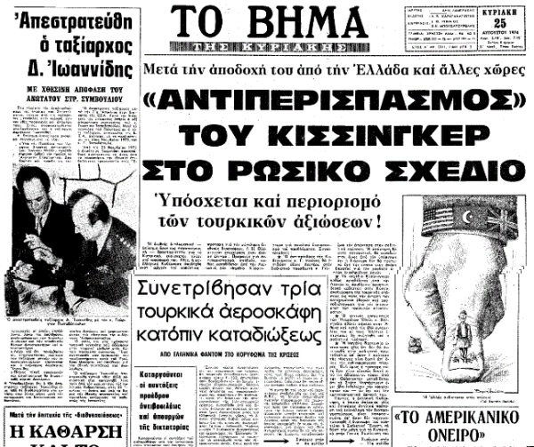 «ΤΟ ΒΗΜΑ», 25.8.1974, Ιστορικό Αρχείο «ΤΟ ΒΗΜΑ» & «ΤΑ ΝΕΑ»