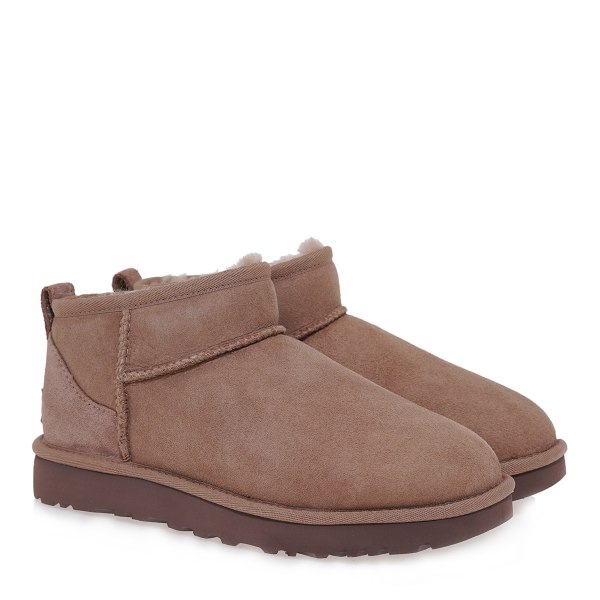 Classic Ultra Mini – Δερμάτινα μποτάκια με γούνα (μπεζ)