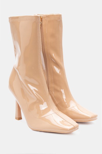 Μποτάκια λουστρίνι με ραφή μπροστά (μπεζ)