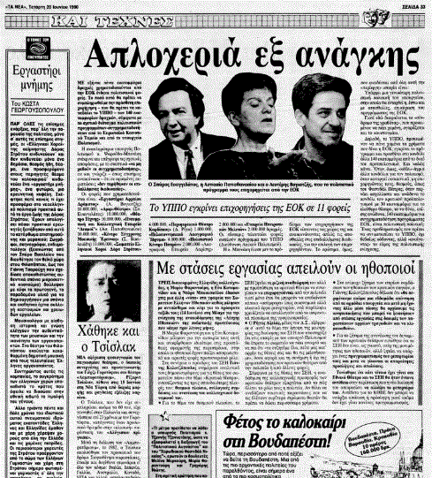«ΤΑ ΝΕΑ», 20.6.1990, Ιστορικό Αρχείο «ΤΟ ΒΗΜΑ» & «ΤΑ ΝΕΑ»