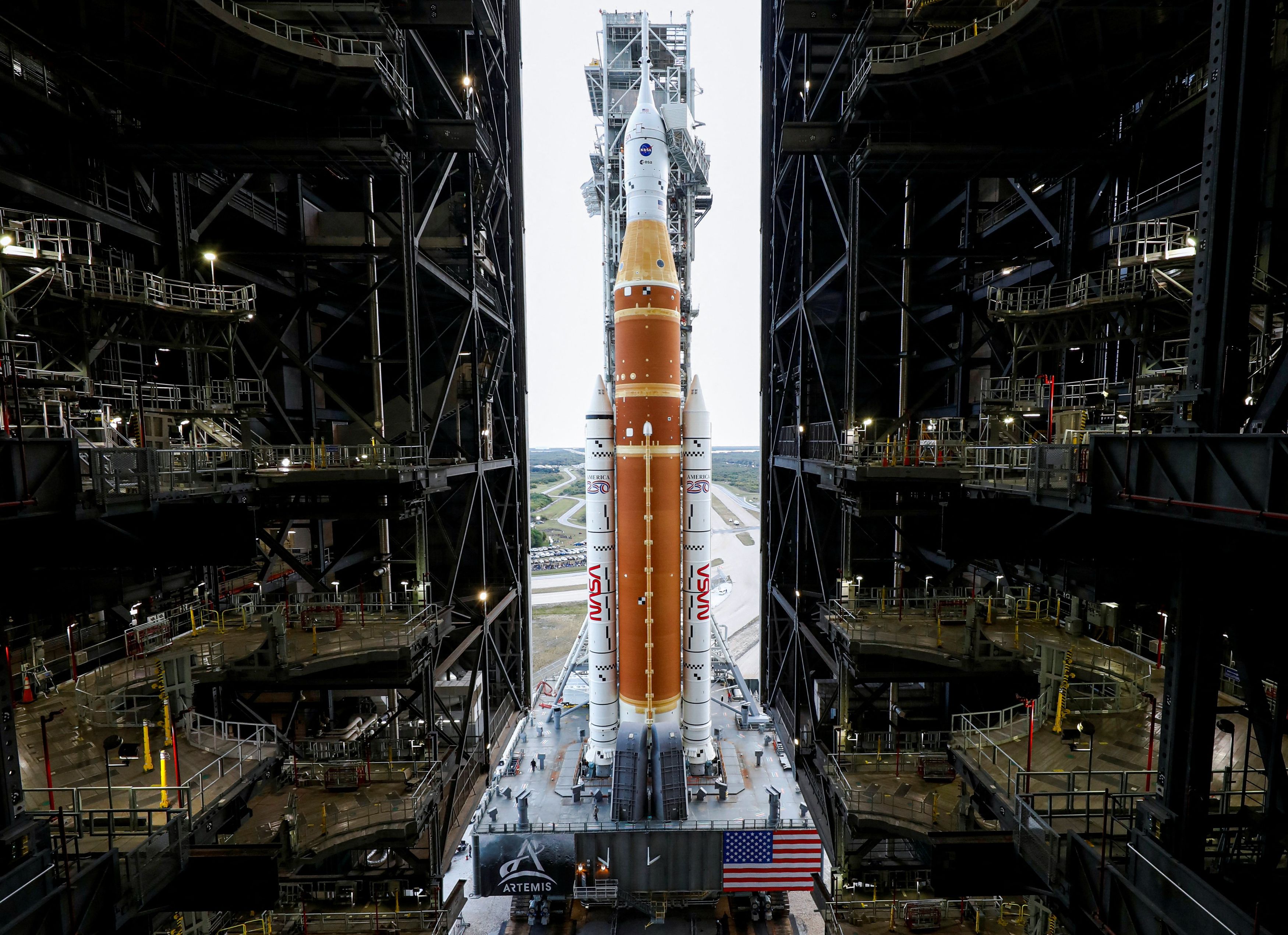 - Στην εξέδρα εκτόξευσης ο υπερπύραυλος της NASA για τον ιστορικό γύρο της Σελήνης