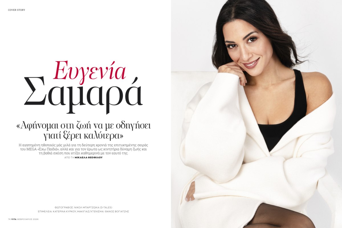 Στο εξώφυλλο, η Ευγενία Σαμαρά. Με αφορμή την επιστροφή της στη δεύτερη σεζόν της επιτυχημένης σειράς του MEGA «Έχω Παιδιά», μιλά στο VITA για τη ζωή, τον έρωτα, τα παιδιά, την ισορροπία και όσα μας κάνουν να νιώθουμε πραγματικά καλά.