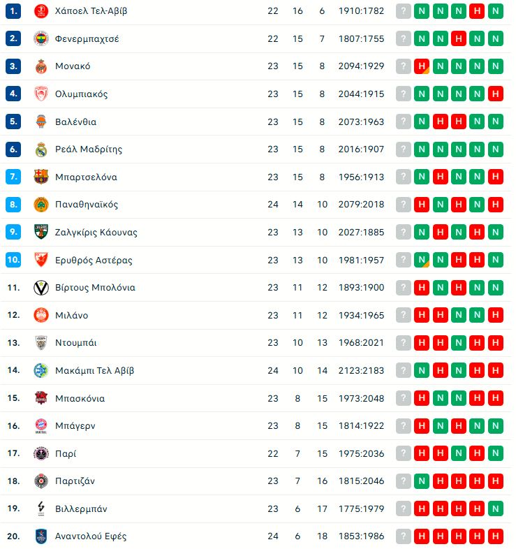 Ο Παναθηναϊκός δεν κατάφερε να ξεπεράσει το «εμπόδιο» της Μακάμπι, καθώς οι Πράσινοι ηττήθηκαν εκτός έδρας από τους Ισραηλινούς με 75-71 και υποχώρησαν στο 14-10 και βρίσκονται στην 8η θέση.