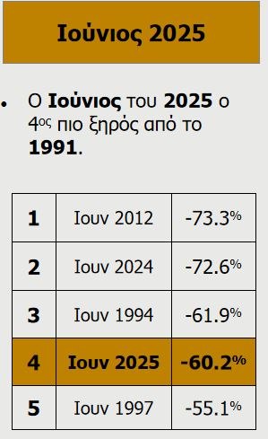 Συνολικά, το 2025 ήταν από τα πολύ ξηρά έτη των τελευταίων 30 ετών.
