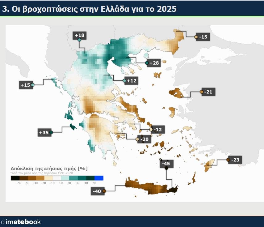 Σύμφωνα με τον κ. Λαγουβάρδο ο χάρτης του 2025 αποτυπώνει τις διαφορετικές συνθήκες που επικράτησαν όσον αφορά τις βροχοπτώσεις το 2025, στις διαφορετικές περιοχές της Ελλάδας.