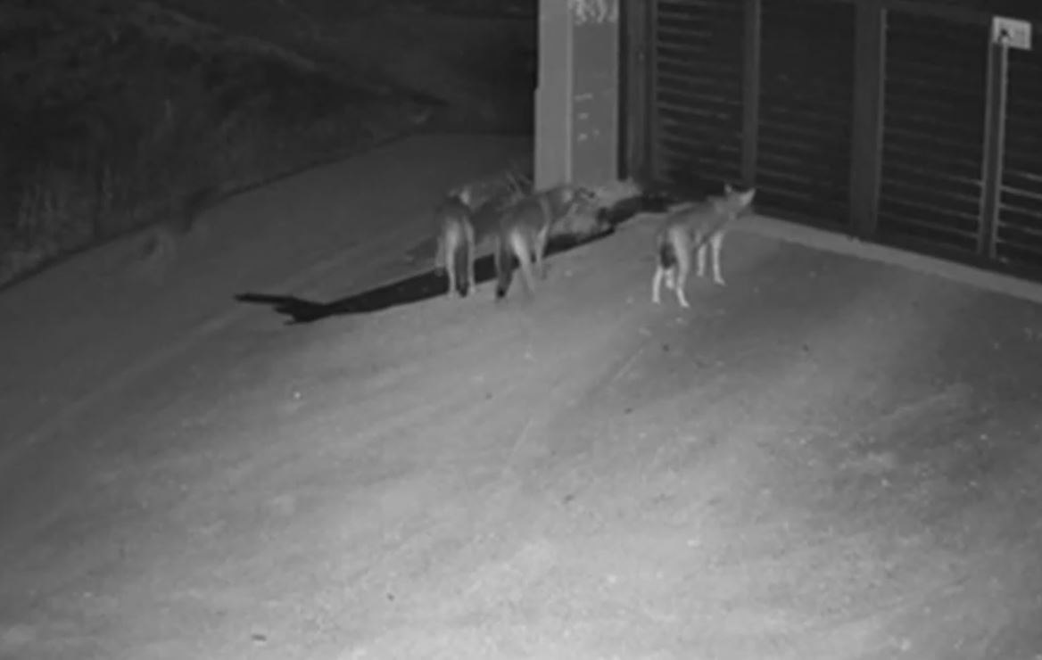 Σε βίντεο από κάμερα ασφαλείας σπιτιού, έχουν καταγραφεί συνολικά τέσσερις λύκοι να φτάνουν μέχρι την είσοδο.