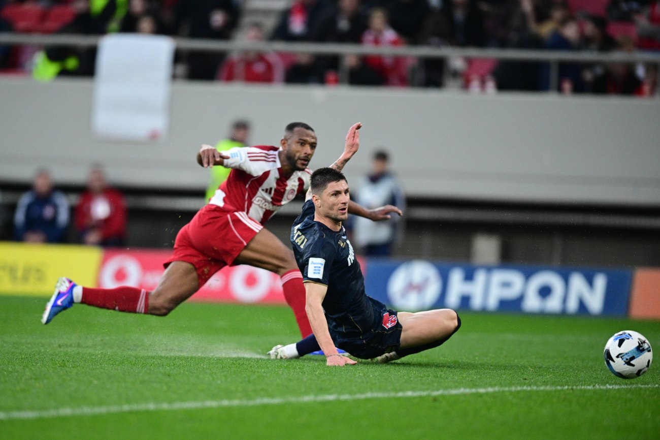 Ο τελευταίος πλάσαρε εύστοχα τον γκολκίπερ της θεσσαλικής ομάδας κι έκανε το 1-0 για τους πρωταθλητές Ελλάδος.
