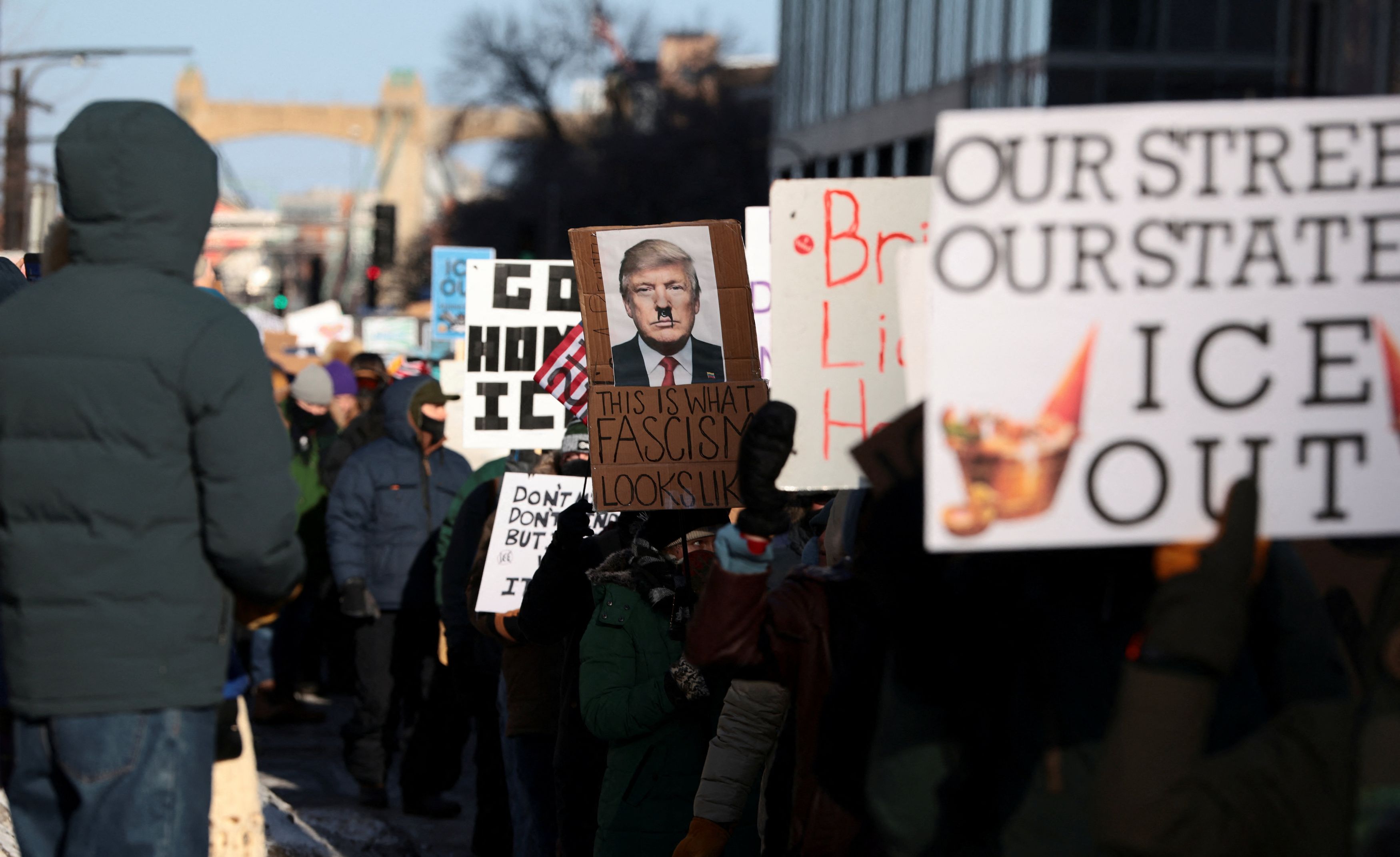 Οι πορείες της Παρασκευής θεωρούνται η μεγαλύτερη μέχρι σήμερα επίδειξη αντίθεσης στην τρέχουσα μεταναστευτική πολιτική στην πολιτεία, καθώς χιλιάδες άνθρωποι περπάτησαν στο κέντρο της πόλης σε θερμοκρασίες που έφταναν τους -23°C.