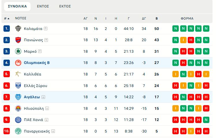 Η τελική βαθμολογία της κανονικής διάρκειας της Super League 2 στον νότιο όμιλο: