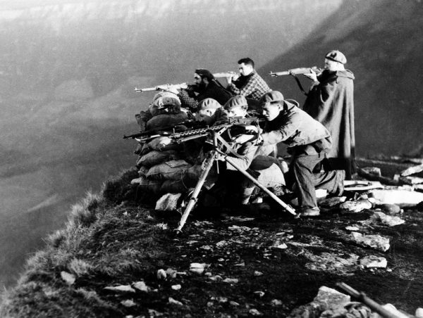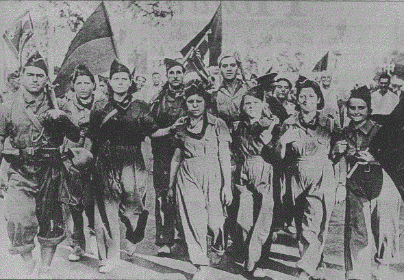 Η μέχρις εσχάτων αναμέτρηση της «κόκκινης» και της «μαύρης» Ισπανίας ξέσπασε στις 18 Ιουλίου 1936, όταν στρατεύματα που τελούσαν υπό την ηγεσία του στρατηγού Φρανσίσκο Φράνκο εξεγέρθηκαν κατά της δημοκρατικά εκλεγμένης κυβέρνησης της Ισπανίας (το Λαϊκό Μέτωπο, συνασπισμός κομμάτων της Αριστεράς, είχε κερδίσει τις εκλογές που είχαν διεξαχθεί το Φεβρουάριο του ίδιου έτους).