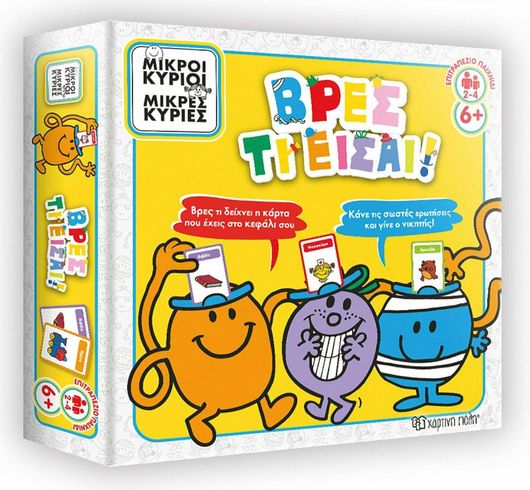 Κάνε τις σωστές ερωτήσεις, βρες τι δείχνει η κάρτα που έχεις στο κεφάλι σου και γίνε ο νικητής. Πάρε μια κάρτα χωρίς να την δεις και τοποθέτησε την στο στεφάνι σου. Κάνε μέχρι και πέντε ερωτήσεις την φορά. Μάντεψε σωστά τι απεικονίζει η κάρτα που έχεις στο κεφάλι σου και επέστρεψε μια μάρκα. Επέστρεψε πρώτος όλες τις μάρκες και θα είσαι ο νικητής! Απλό, γρήγορο και ξεκαρδιστικό.