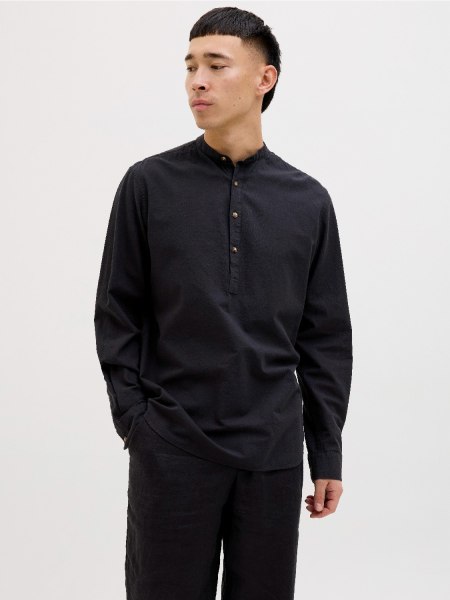 Ένα μαύρο λινό πουκάμισο είναι πάντα χρήσιμο, ειδικά για πιο προσεγμένες εμφανίσεις. Η ανάλαφρη υφή του το κάνει άνετο, ενώ το χρώμα του το καθιστά εξαιρετικά ευέλικτο. Φοριέται με τζιν, chinos ή ακόμα και κάτω από σακάκι.