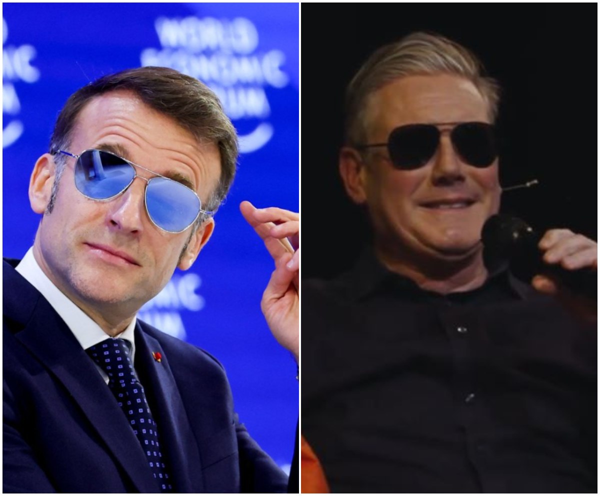 Ο Βρετανός πρωθυπουργός Κιρ Στάρμερ, με χιουμοριαστική διάθεση φόρεσε γυαλιά ηλίου τύπου aviator μιμούμενος την εμφάνιση του Εμανουέλ Μακρόν στο Νταβός