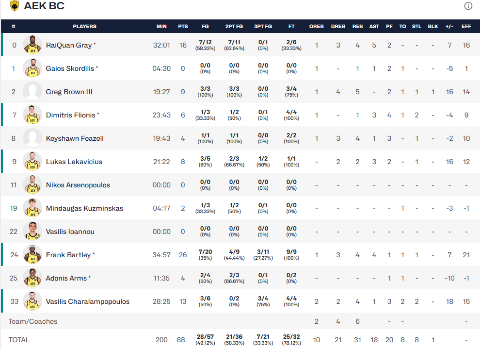 Φουλ για την πρώτη θέση του ομίλου πάει η ΑΕΚ αφού πέτυχε δεύτερη νίκη σε ισάριθμους αγώνες. Καθοριστική συμβολή είχε και ο Χαραλαμπόπουλος που σταμάτησε στους 13 πόντους, με 4 ριμπάουντ