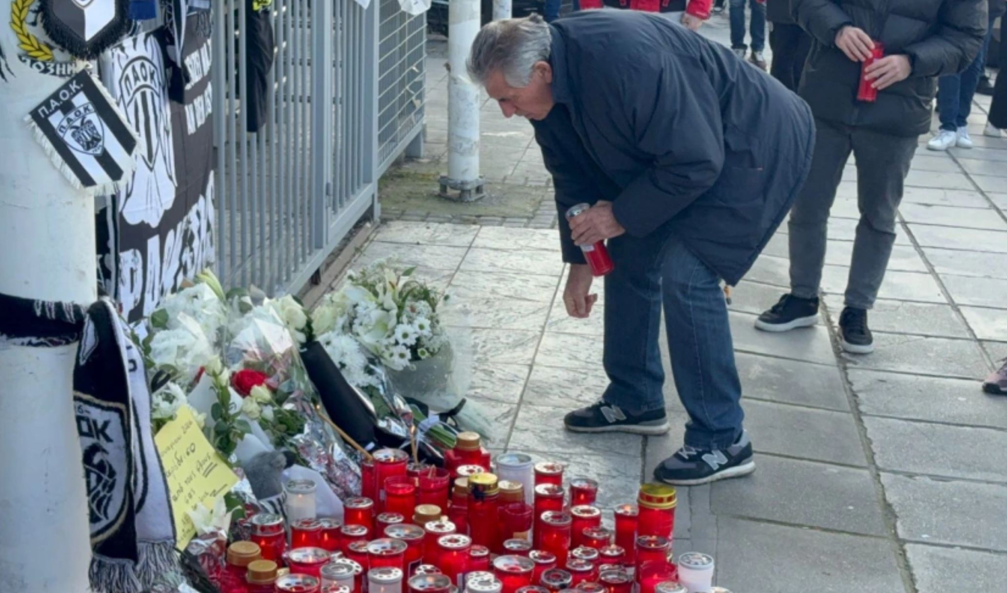 Ένας από αυτούς ήταν και ο θρύλος του συλλόγου, Άγγελος Αναστασιάδης, ο οποίος θέλησε να αφήσει και αυτός με τη σειρά του ένα λουλούδι και να ανάψει ένα κερί στο άτυπο μνημείο που έχει στηθεί έξω από τη θύρα των οργανωμένων οπαδών του Δικεφάλου του Βορρά.