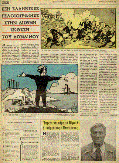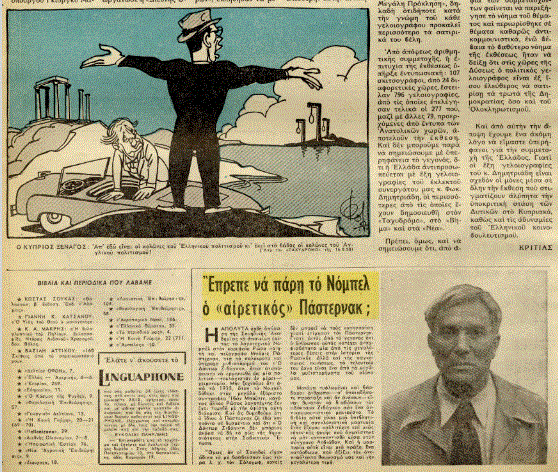 *Κείμενο, σύντομο και εξόχως ουσιαστικό, που είχε δημοσιευτεί στον «Ταχυδρόμο» στις 25 Οκτωβρίου 1958, δύο μόλις ημέρες μετά την ανακοίνωση της απονομής του Νομπέλ Λογοτεχνίας στον «αιρετικό» —έτσι χαρακτηρίζεται στον τίτλο του άρθρου— ρώσο συγγραφέα Μπόρις Πάστερνακ.