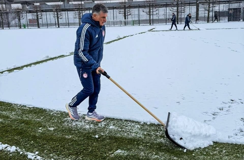 - Έπος: Ο Μεντιλίμπαρ καθαρίζει το χιόνι πριν την προπόνηση του Ολυμπιακού στην Ολλανδία (pics, vid)