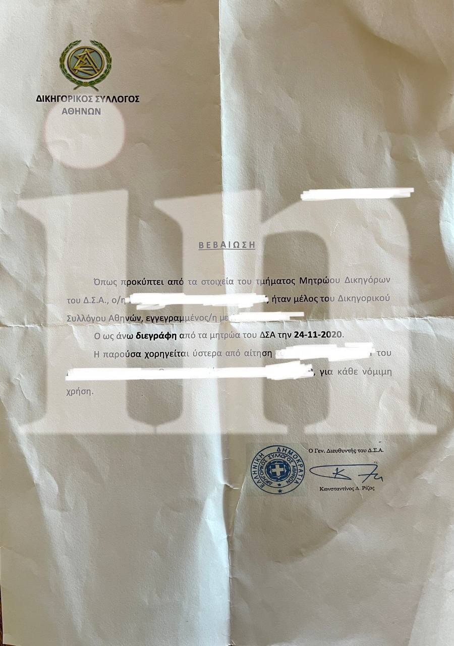 Όπως είχε αποκαλύψει το in, ο εν λόγω δικηγόρος είχε διαγραφεί από τον ΔΣΑ, ήδη από το 2020, κατόπιν αμετάκλητης καταδίκης του για απάτες, πλαστογραφίες και απιστία δικηγόρου.