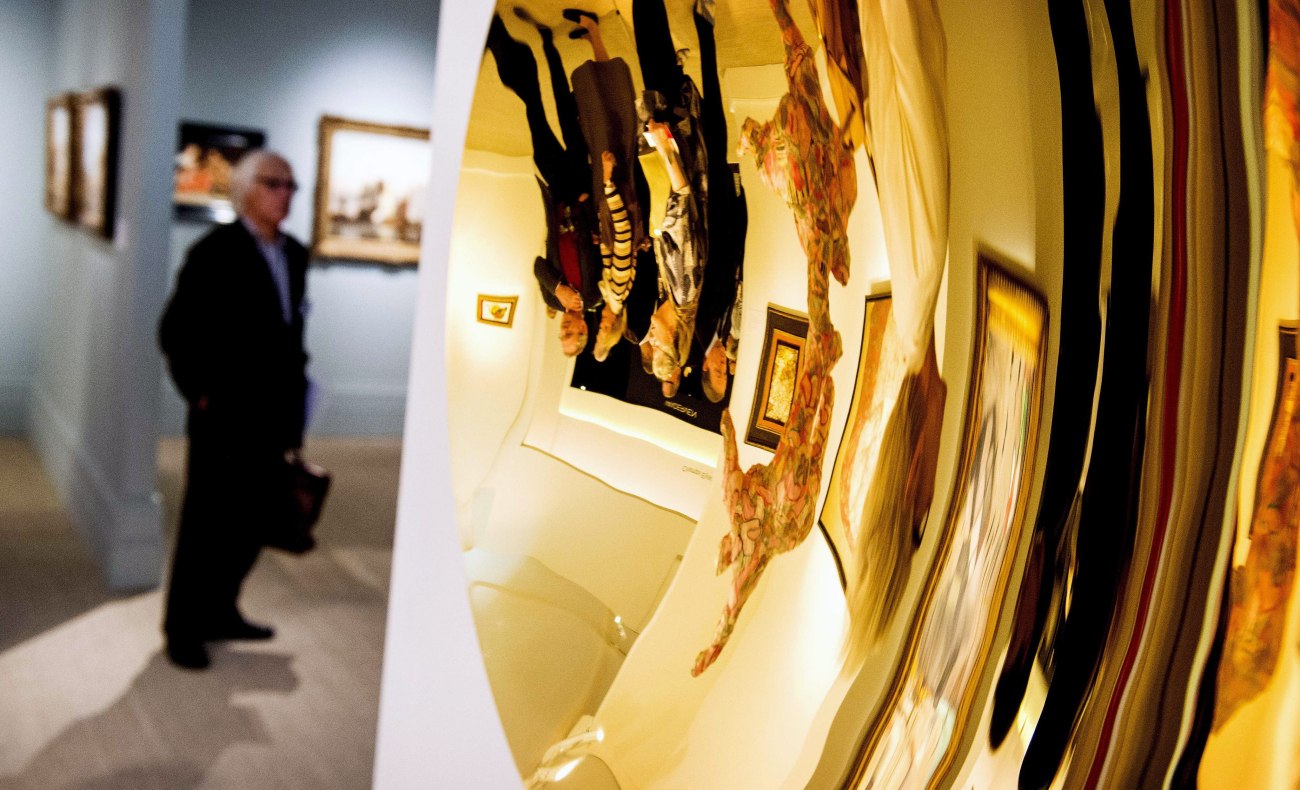 Ένας επισκέπτης παρατηρεί το έργο «Untitled (2012)» του Ινδού καλλιτέχνη Anish Kapoor στην έκθεση TEFAF στο συνεδριακό κέντρο MECC στο Μάαστριχτ της Ολλανδίας, στις 14 Μαρτίου 2014. Η έκθεση τέχνης και αρχαιοτήτων ήταν ανοιχτή για το κοινό από 14 έως 23 Μαρτίου. EPA/KOEN VAN WEEL
