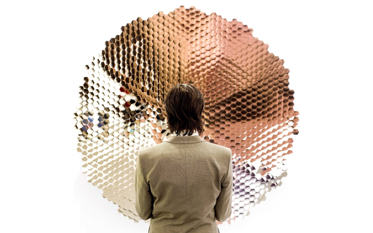 Ένας επισκέπτης παρατηρεί το έργο «Untitled (2010)» του Ινδού καλλιτέχνη Anish Kapoor στην έκθεση TEFAF, στο συνεδριακό κέντρο MECC στο Μάαστριχτ της Ολλανδίας, στις 14 Μαρτίου 2014. Η έκθεση τέχνης και αρχαιοτήτων ήταν επισκέψιμη από 14 έως 23 Μαρτίου. EPA/KOEN VAN WEEL