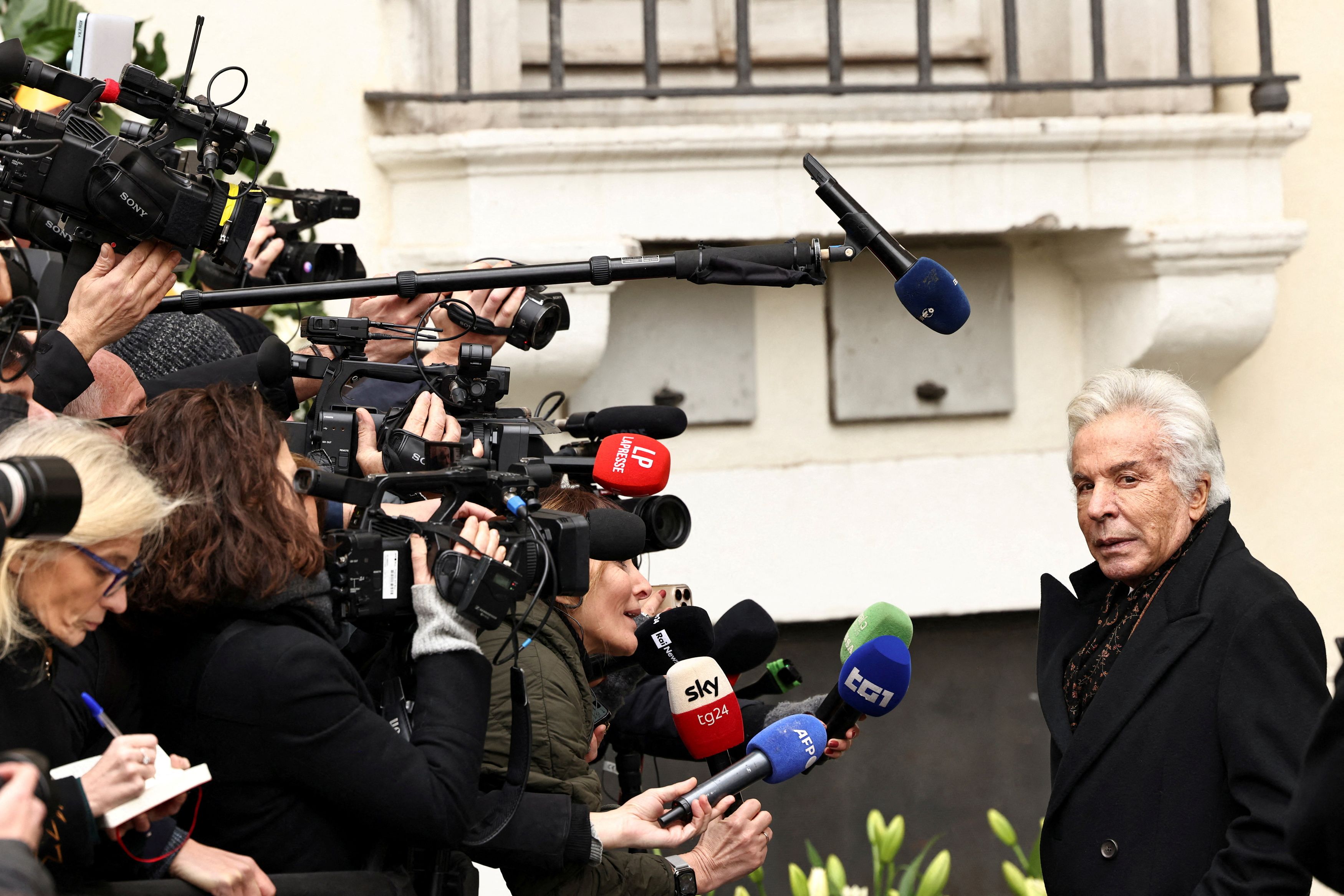Ο Giancarlo Giammetti, μιλάει στους δημοσιογράφους λίγο πριν την κηδεία του Valentino στις 21 Ιανουαρίου 2026. REUTERS/Matteo Minnella