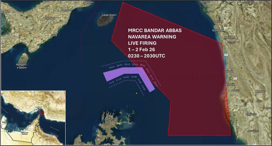 Πριν από τις ασκήσεις, το Ιράν εξέδωσε ανακοίνωση προς τους αεροπόρους – NOTAM, προειδοποιώντας για στρατιωτικές δραστηριότητες με πραγματικά πυρά στον εναέριο χώρο γύρω από το στενό του Ορμούζ.