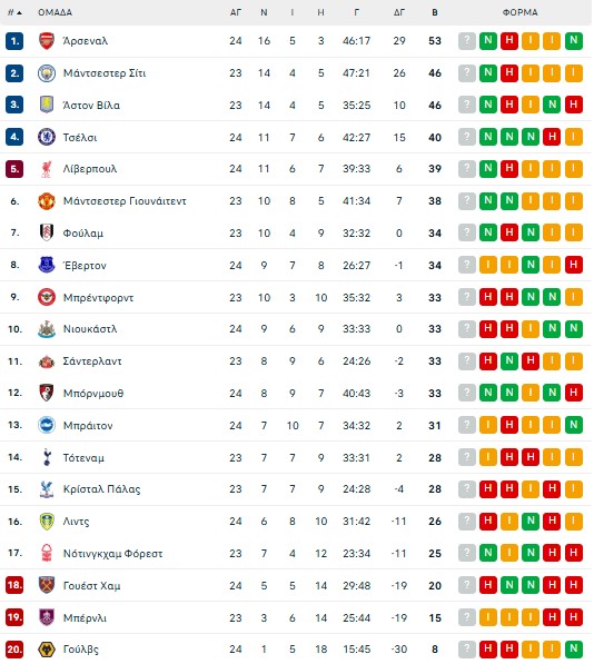 Το πρόγραμμα και τα αποτελέσματα της 24ης αγωνιστικής: