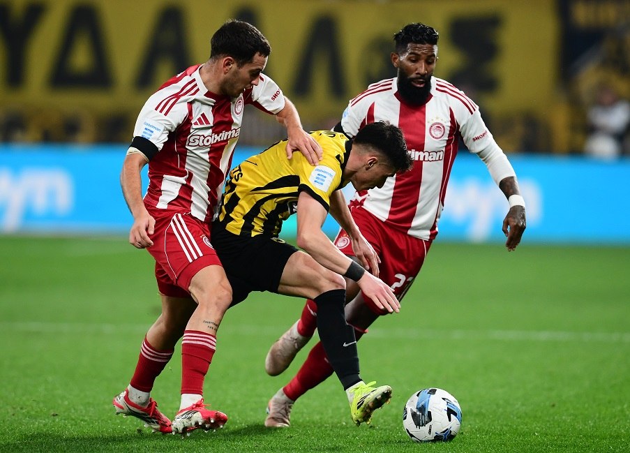 O Ολυμπιακός «άγγιξε» το 0-1 στο 19ο λεπτό του ντέρμπι της Φιλαδέλφειας, αλλά ο τερματοφύλακας της ΑΕΚ, Στρακόσα κράτησε το μηδέν με μεγάλη επέμβαση στο κοντινό που έκανε ο Ροντινέι.