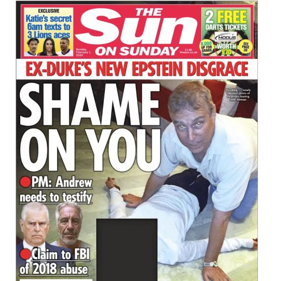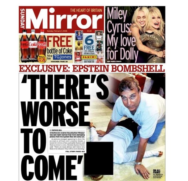 Οι νέες φωτογραφίες του Άντριου Μαουντμπάτεν-Γουίντσορ από την τελευταία δημοσιευμένη σειρά εγγράφων που σχετίζονται με τον Τζέφρι Έπσταϊν κυριαρχούν στις εφημερίδες της Κυριακής.