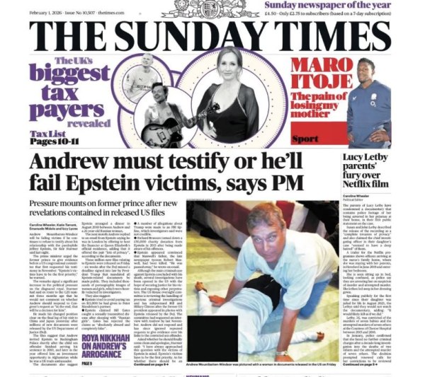 Η Sunday Times λέει ότι ο Άντριου πρέπει να καταθέσει.