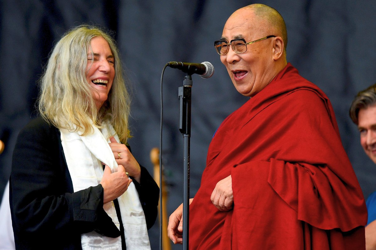 Στην κεντρική φωτό ο Δαλάι Λάμα στην εμφάνιση του στο μουσικό φεστιβάλ του Glastonbury μαζί με την Πάτι Σμιθ στα 80α γενέθλια του το 2015.