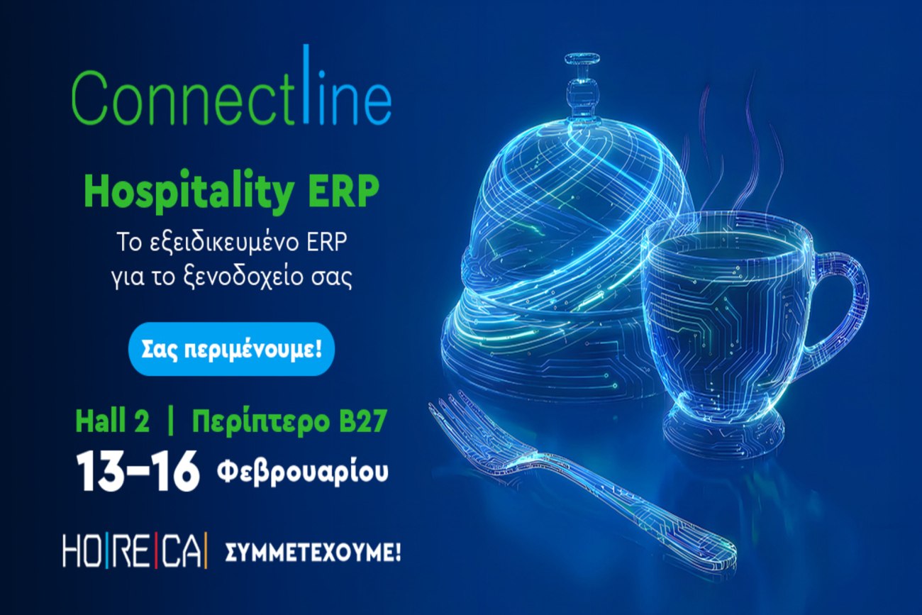 ΗConnectline έχει την απάντηση! Επισκεφθείτε τη HORECA 2026 (13–16 Φεβρουαρίου, Metropolitan Expo) για να γνωρίσετε το ArtIEHospitalityERP, την εξειδικευμένη εφαρμογή οργάνωσης και διοικητικού ελέγχου για τον κλάδο της φιλοξενίας (Hall 2 | Περίπτερο Β27).