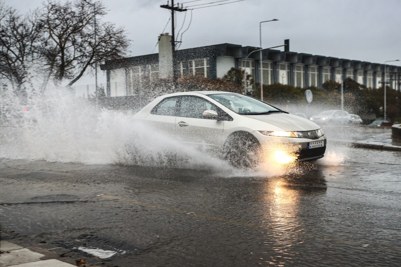 – Μείνετε μέσα και ανάψτε τα προειδοποιητικά φώτα στάσης (φώτα έκτακτης ανάγκης) μέχρι να κοπάσει η καταιγίδα.