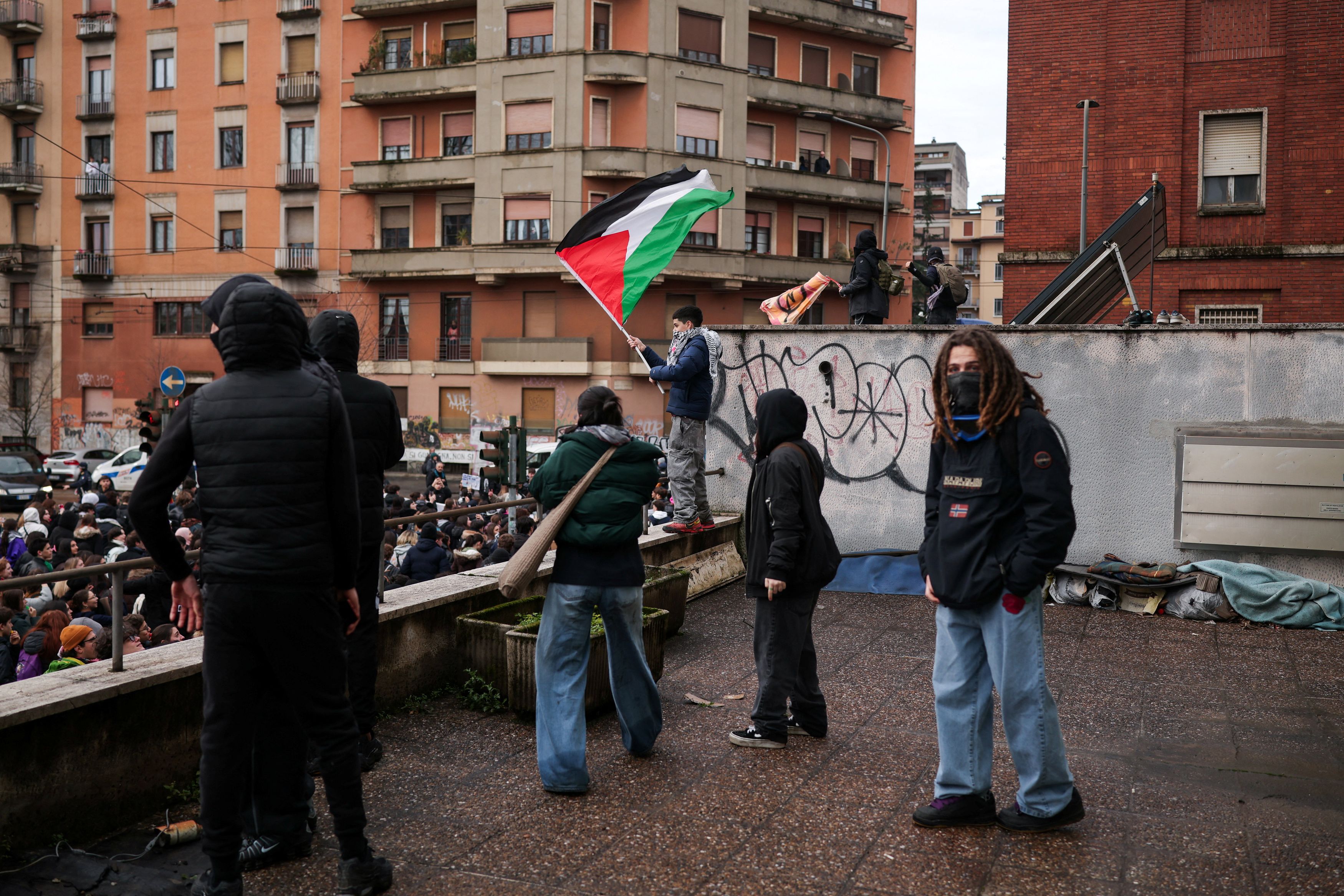 Φωτογραφία: Ένα άτομο κυματίζει μια παλαιστινιακή σημαία, κατά τη διάρκεια διαδήλωσης ενάντια στην παρουσία της ICE στους Χειμερινούς Ολυμπιακούς Αγώνες, Μιλάνο, 6 Φεβρουαρίου 2026. REUTERS/Alkis Konstantinidis