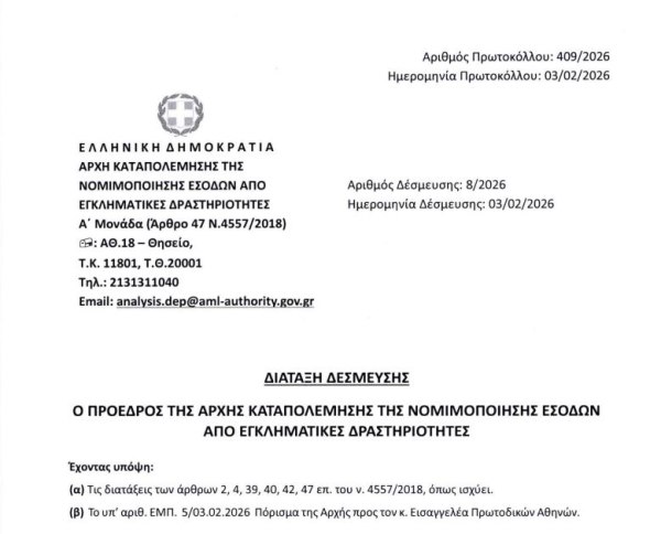 Χαρακτηριστικό απόσπασμα από το έγγραφο της Αρχής για το Ξέπλυμα.