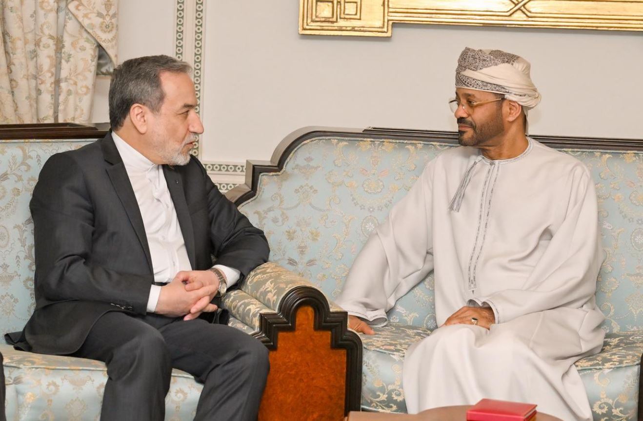 Ο υπουργός εξωτερικών του Ιράν Σαγιέντ Αμπάς Αραγκτσί, με τον ομόλογό του του Ομάν Μπάντρ Αλμπουσαϊντι (δεξιά).