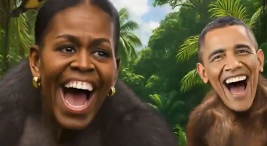Στο βίντεο του Τραμπ εμφανίζεται το ζεύγους Ομπάμα με γελαστά πρόσωπα πάνω σε σώματα πιθήκων, με φόντο τη ζούγκλα