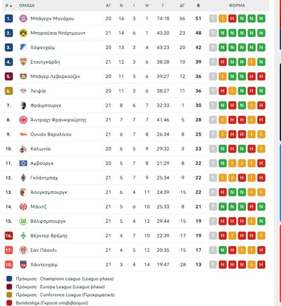 Αναλυτικά τα αποτελέσματα και το πρόγραμμα της 21ης αγωνιστικής της Bundesliga: