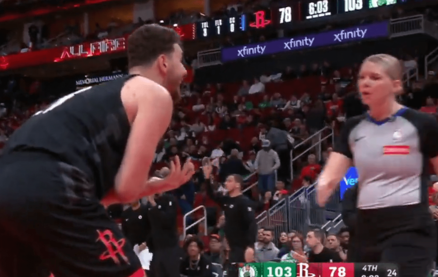 Αρνητικός πρωταγωνιστής της αναμέτρησης των Ρόκετς με τους Σέλτικς ήταν ο Αλπερέν Σενγκούν, που αποβλήθηκε μετά από διαμαρτυρία για σφύριγμα που δεν του δόθηκε.