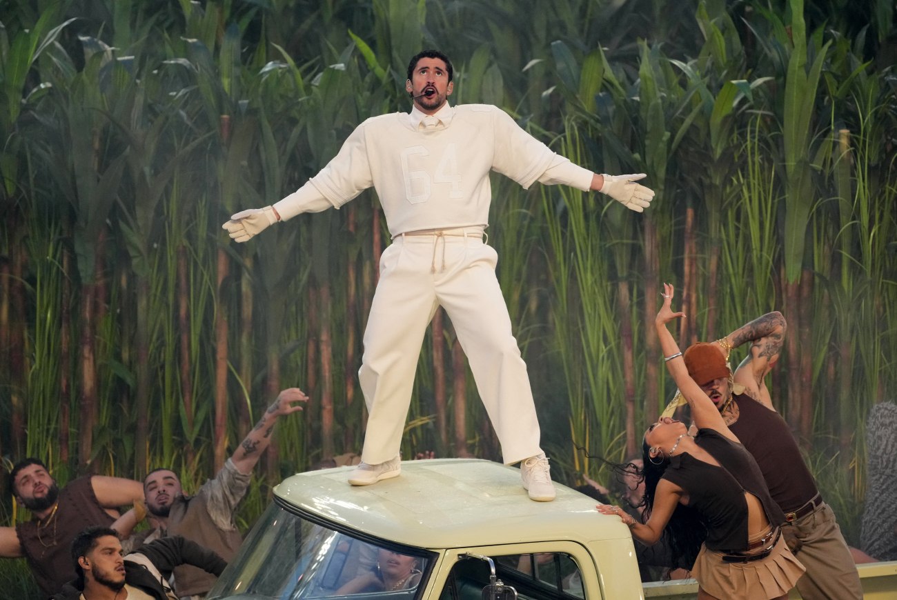 Ο Bad Bunny (Μπενίτο Αντόνιο Μαρτίνες Οκάσιο) έστησε στο Levi’s Stadium, στη Σάντα Κλάρα της Καλιφόρνια, ένα σκηνικό που άλλαζε διαρκώς: από χωράφι ζαχαροκάλαμου και λαϊκή γιορτή μέχρι street σκηνές που θύμιζαν Νέα Υόρκη και παναμερικανική παρέλαση. Το concept δεν βασίστηκε στο τεχνο-υπερθέαμα, αλλά σε μια παλέτα ζωντανών ήχων — σάλσα μπάντα, κρουστά plena και bomba — με τον χορό να κυριαρχεί και τις λεπτομέρειες να λειτουργούν ως κρυφές πολιτισμικές αναφορές.