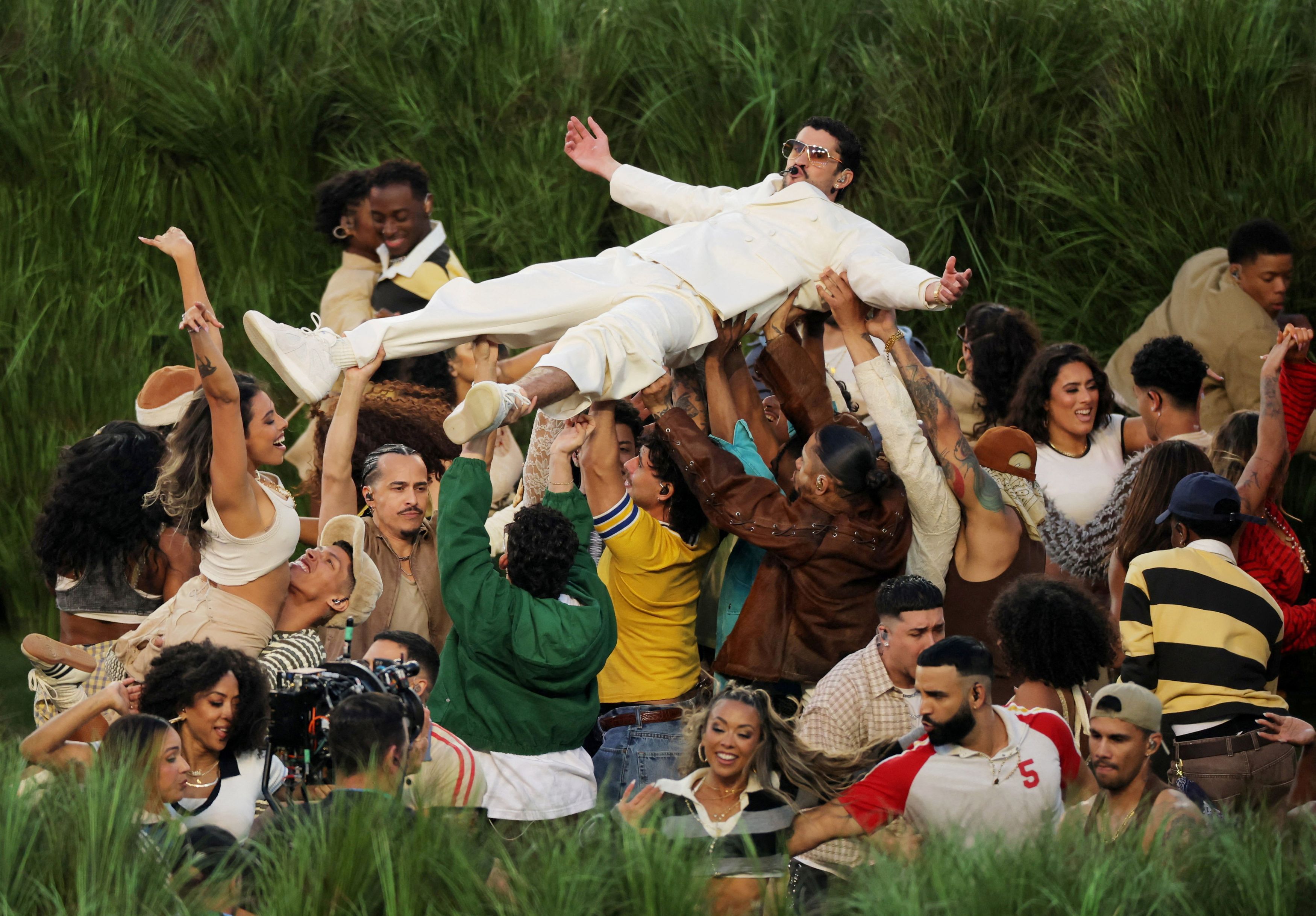Super Bowl LX – Σόου Ημιχρόνου – New England Patriots εναντίον Seattle Seahawks – Levi’s Stadium, Σάντα Κλάρα, Καλιφόρνια, Ηνωμένες Πολιτείες – 8 Φεβρουαρίου 2026: ο Bad Bunny εμφανίζεται κατά τη διάρκεια του σόου του ημιχρόνου. REUTERS/Mike Blake TPX IMAGES OF THE DAY.