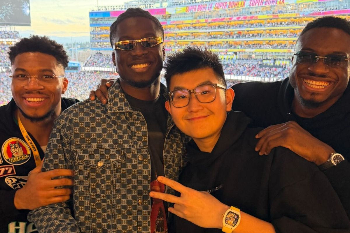 Ο Ασιάτης επιχειρηματίας και οι Γιάννης, Θανάσης και Άλεξ Αντετοκούνμπο ) βρέθηκαν στα επίσημα του Levi’s Stadium στη Σάντα Κλάρα της Καλιφόρνια απολαμβάνοντας τόσο τον αγώνα που έκρινε τον τίτλο, όσο και το φαντασμαγορικό σόου στο ημίχρονο, με τον Bad Bunny και τη Lady Gaga.