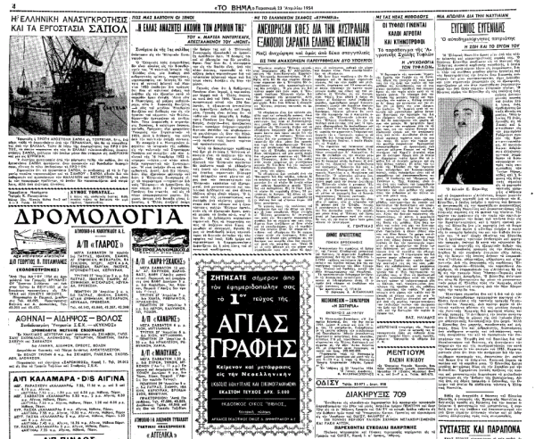*Κείμενο που είχε δημοσιευτεί στην εφημερίδα «Το Βήμα» την Παρασκευή 23 Απριλίου 1954, την επαύριον του θανάτου του Ευγενίου Ευγενίδη.
