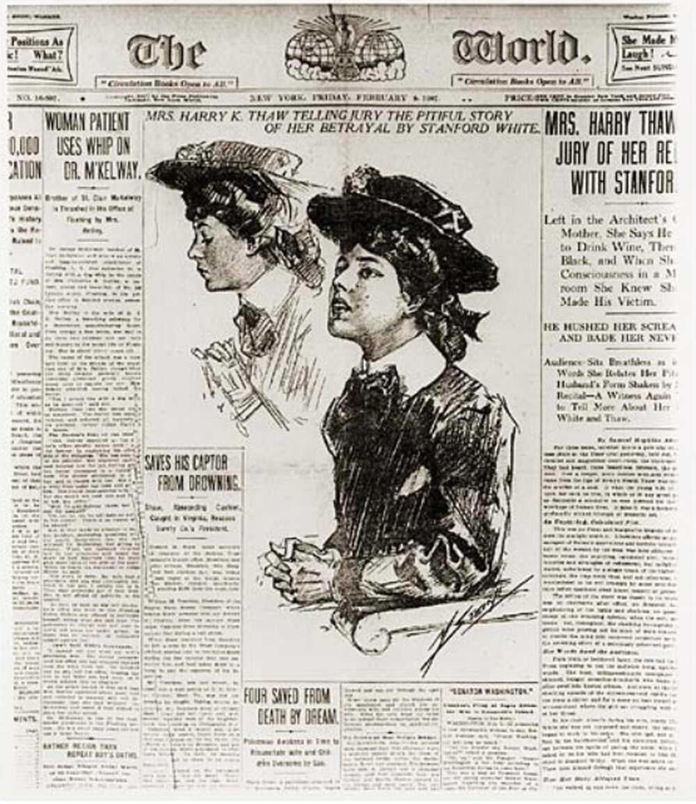 Όταν τον Γενάρη του 1907 ο δράστης καθόταν στην καρέκλα του κατηγορούμενου, όλα τα μάτια ήταν στραμμένα στην πανέμορφη Έβελιν, αυτή που «πρώτα πουλήθηκε στον Γουάιτ και μετά πουλήθηκε για δεύτερη φορά στον Θόου», όπως έγραψε μια εφημερίδα της εποχής.